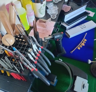 Artisan made Kabbalah moon baked jewels using precious metals and sapphires.